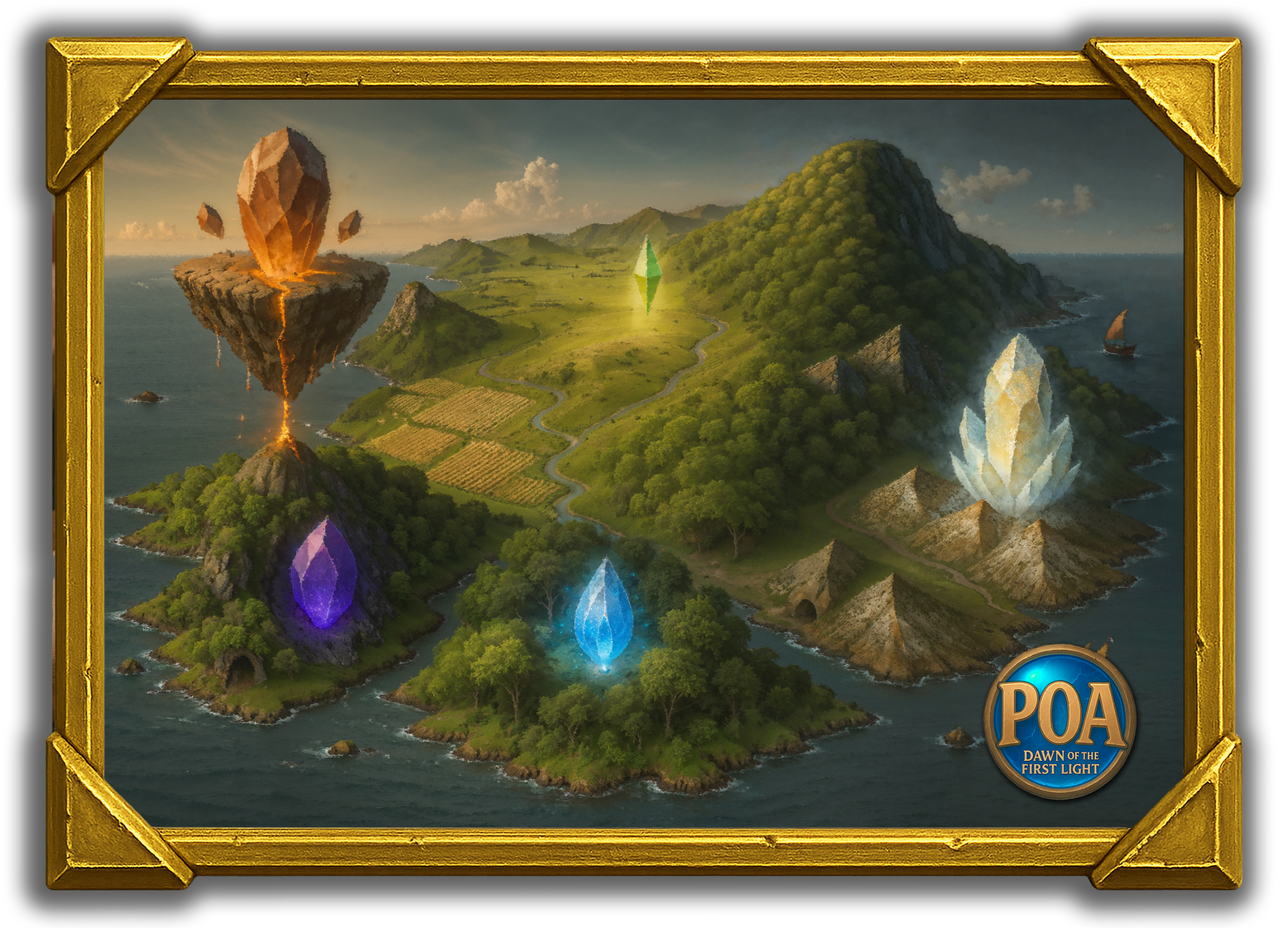 When the First Light shattered, five shards forged five lands and factions. From fiery peaks to frozen spires, golden fields, shadowed caves, and wild forests— each faction fights to claim its shard and shape the World of Aethra.